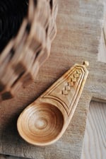 The perfect little hand carved pocket spoon, made from a stunning piece of local storm fallen cherry wood using traditional hand tools. Features chip carving decoration. Knife finished (no sand paper used) and sealed with a blend of organic walnut oil and beeswax. Made to be used and enjoyed.