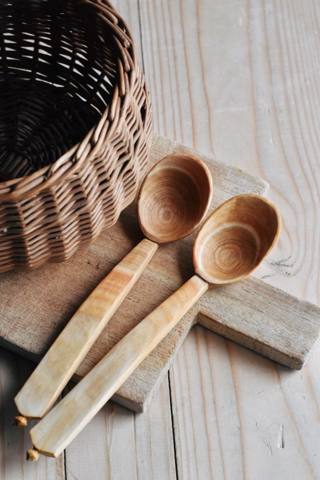 Hand carved cherry eating spoons