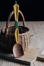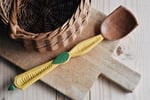 Beautiful hand carved roasted beech cooking and serving spoon. Knife finished and painted with a natural food safe milk paint. Sealed with a blend of organic walnut oil and beeswax.
